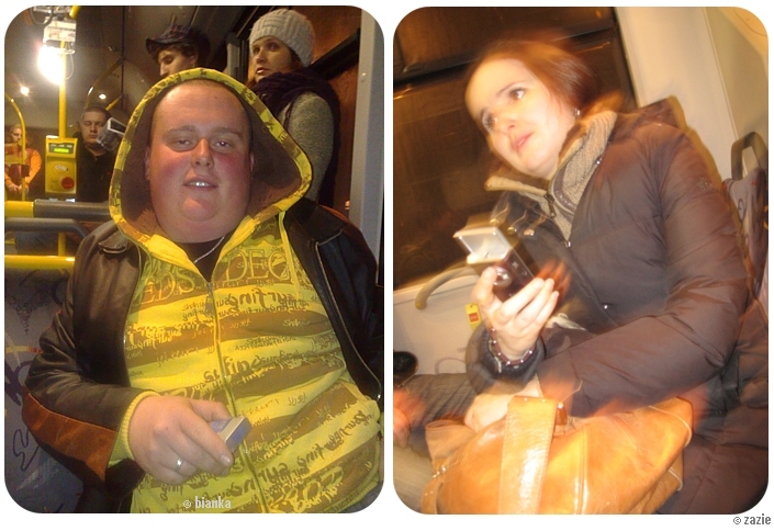 kolega autobusowy – jabba the hutt. oraz bianuszka terroryzująca pasażerów autobusu lampą błyskową w telefonie.