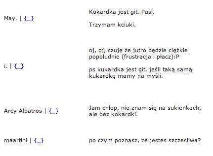 a i kokardkę, taką małą kokardkę na piersi. ale właściwie to nie wiem, czy taka kokardka pasuje, hmmm…