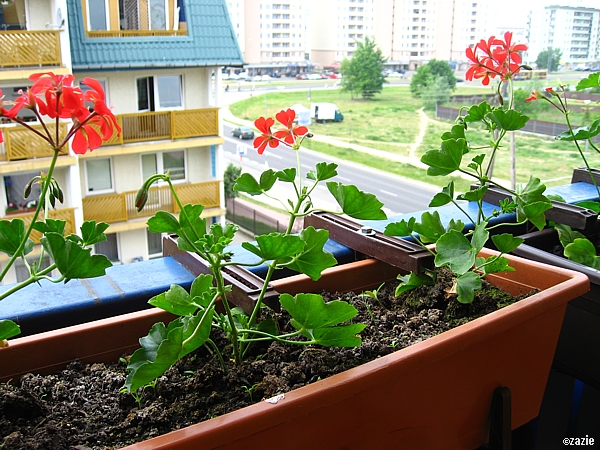 jak z ozdobną konewką przechadzam się nad skrzynkami,