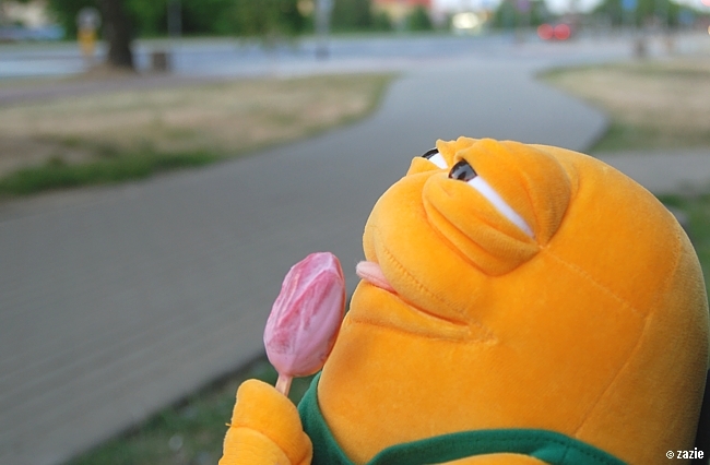 pobiegł na przystanek autobusowy i z właściwą sobie gracją napchanego po kokardę trzmiela