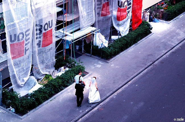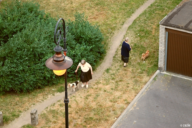 czas na wieczorne siku. perełka pani zdzisławy spod trójki i portos pani elżbiety spod osiemntastki ochoczo znaczą swoje terytoria.