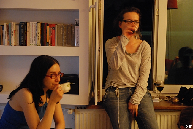 członkowie 'orkiestry ze stalowej’ ćwiczą gamę na kieliszkach czerwonego wina…
