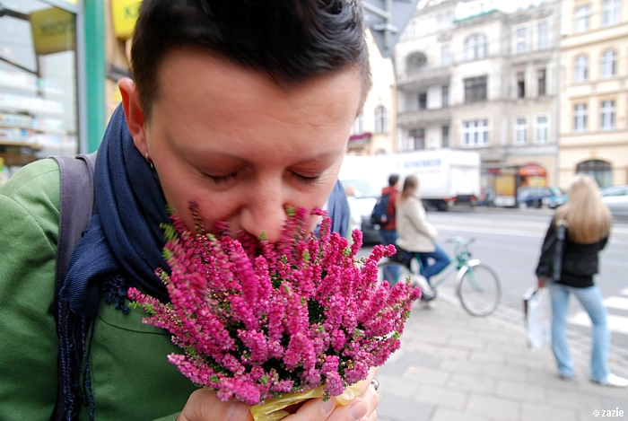 Efcio trzymo doniczko wrzoso.