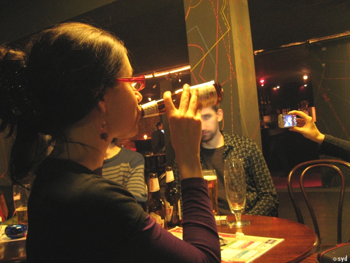 zazie się alkoholizuje w naparstku. wzięła sobie guzik i złotą plastikową klamrę.