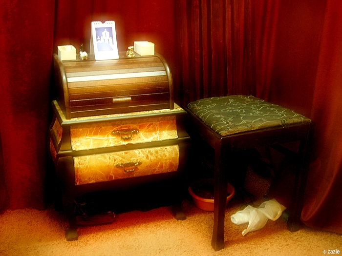 w żadnym szanującym się saloniku artystowskim nie może zabraknąć plastikowej miski z osobliwą zawartością (żwirek dla kota?!),
