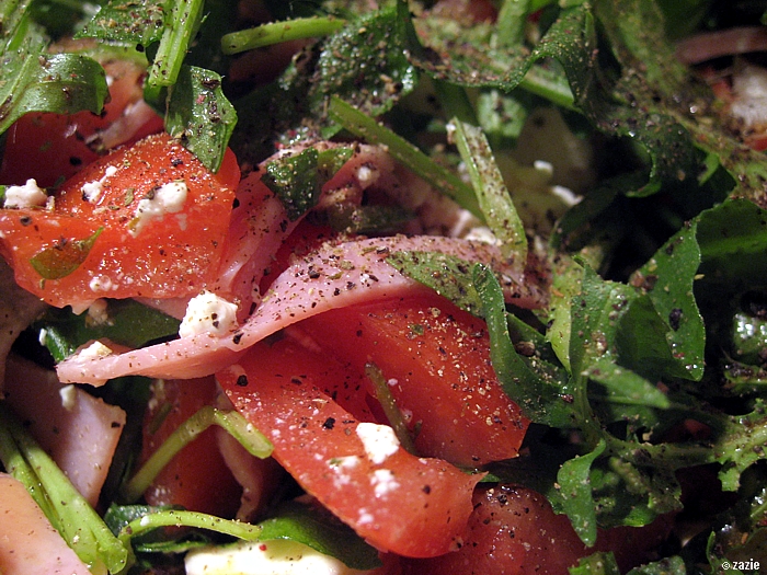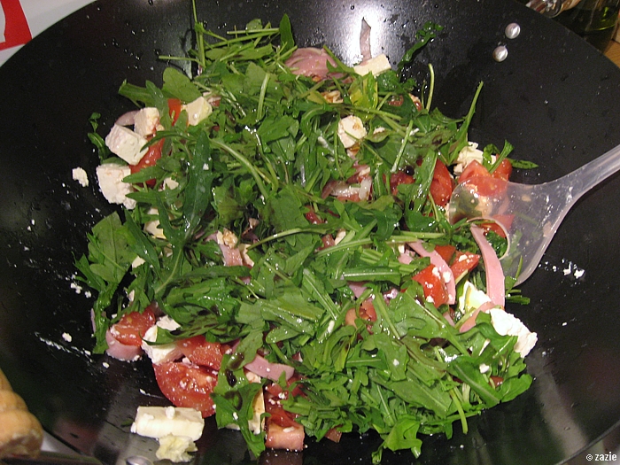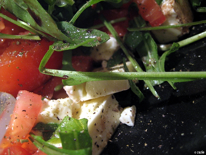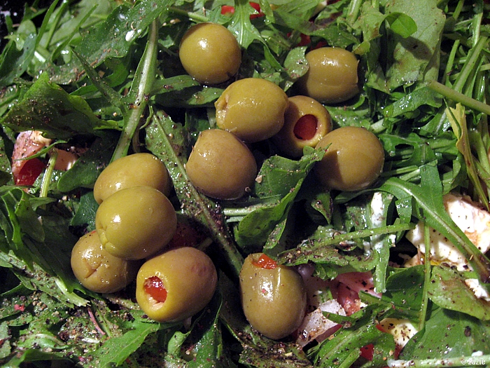 o, proszę – rukola, oliwki, serek, pomidorek.