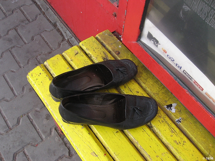 a zdesperowane kobiety pozbywają się znoszonych butów na przystankach tramwajowych…