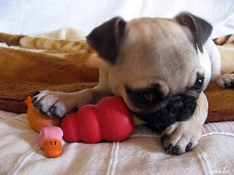 a tutaj z drugim gryzaczkiem i swoją ulubioną kaczuchą, któej odgryzła obie nogi.