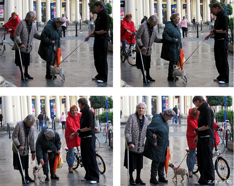 weź na smycz małego mopsa i przechadzaj się trotuarem pod planem be. efekt murowany.