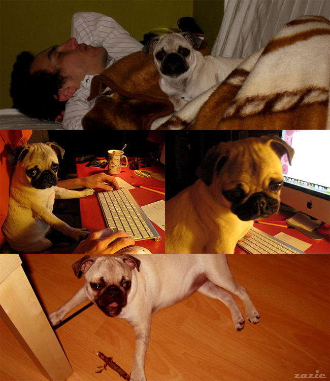 aktualnie patyś leży sobie na kanapie, tuż obok gumowego klapka, którego kumciu lubi sobie potarmosic