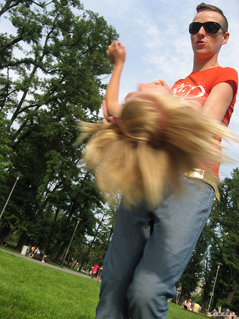 a jak jesteśmy, to znaczy, że „faaajnieee jeees ouuu jeees chieeees” i można rozrabiać. tu np. poprawić ani fryzurę psią mordą.