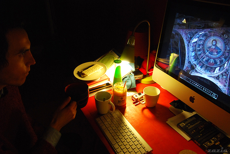Syd ma cały świat w tubkach. odkręca, wyciska i nagle się zjawia. kawałek po kawałku.