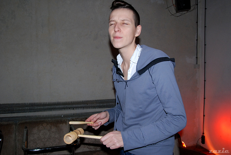 z braku lepszego zajęcia Zazie mąci przestrzeń miotełkami perkusyjnymi