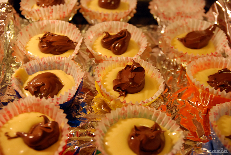 nastepnie na wierzch nakładamy po 2-3 łyżeczki nutelli. ja nakładałam 2 łyżeczki do foremki, a trzecią do buzi.