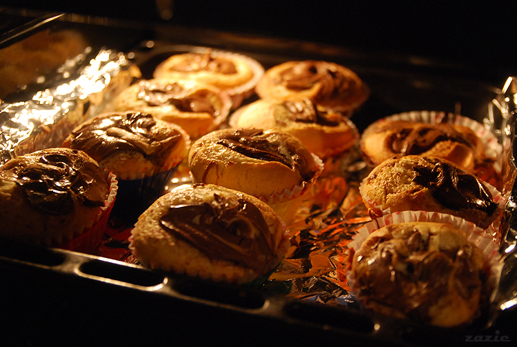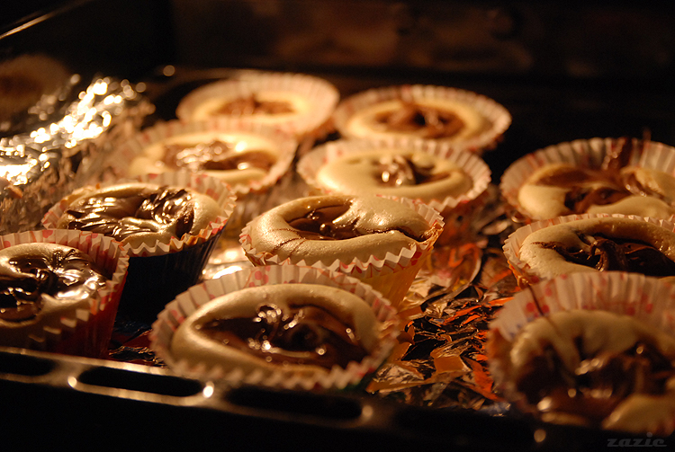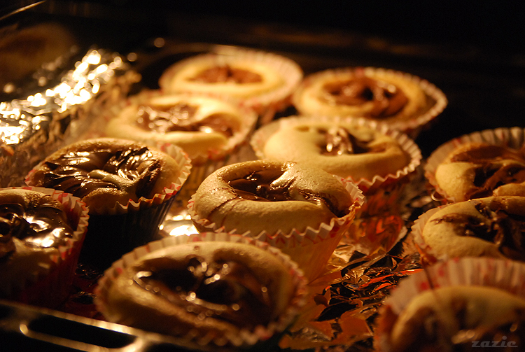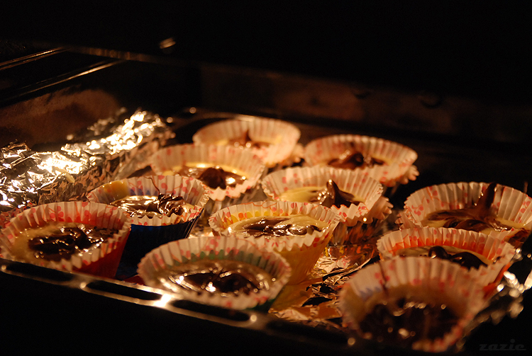 nastepnie wstawiamy babeczki do nagrzanego do 170*C piekarnika i przysuwamy sobie stołeczek do patrzenia.