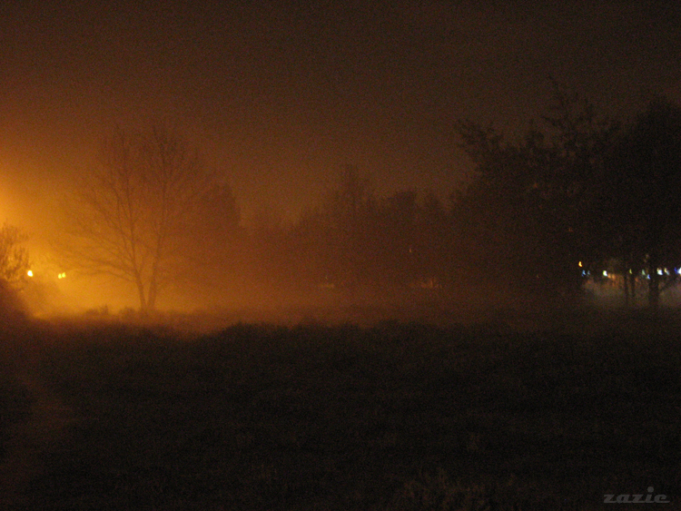 jest trzecia nad ranem. ponad trawą unosi się mgła.