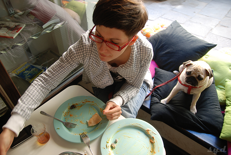 Zazie zmiata z talerzy swoich i cudzych. Kumok obrażona, po próbie ucieczki i rozgnieceniu pupką truskawki na podłodze, nie chce z nami gadać.