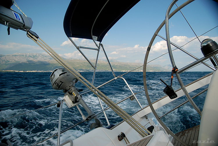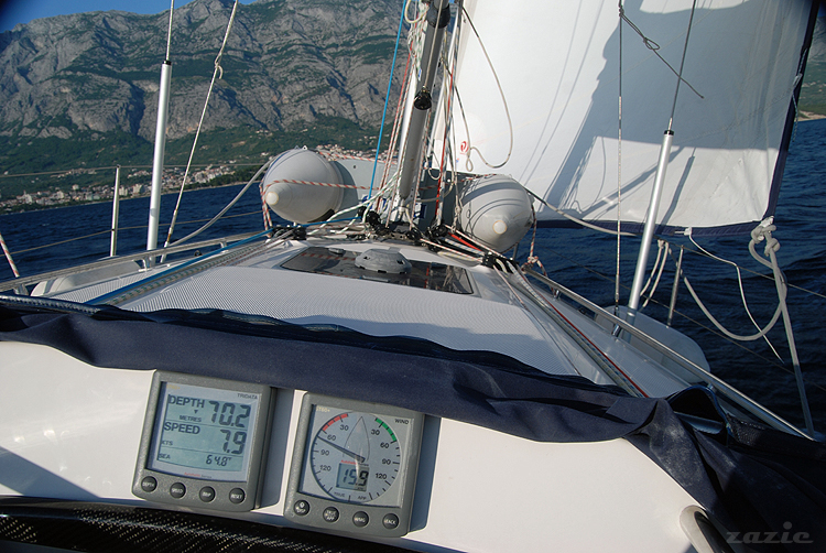 płyniemy z prędkością prawie 8 węzłów. siła wiatru 16 węzłów, a pod nami 70-metrowa głębina.