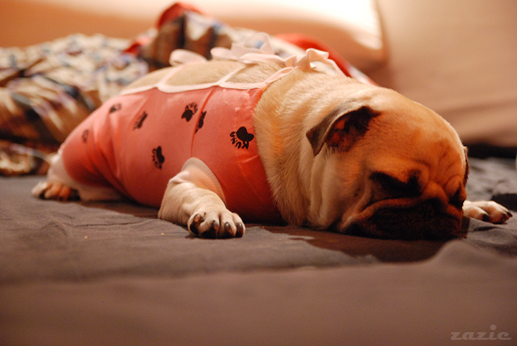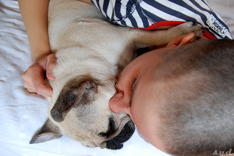 otwiera jedno oko i merda na nasz widok tym swoim zakręconym świńskim ogonkiem. mam ochotę turlać się ze szcześcia…