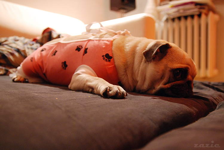 ale dosyć szybko znudziła się koniecznością ciągłego spania, leżenia, sapania, znużenia, rozdrażnienia, karmienia