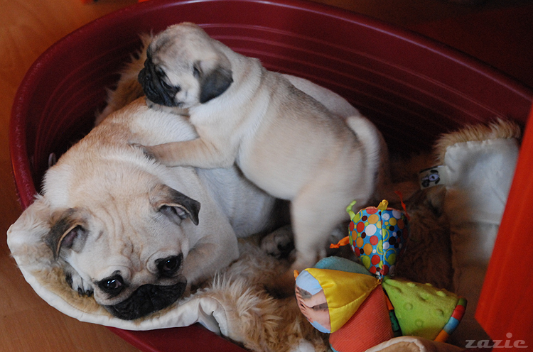 a następnie przypełzło do mopsa właściwego i wpierniczyło mu się na plecy