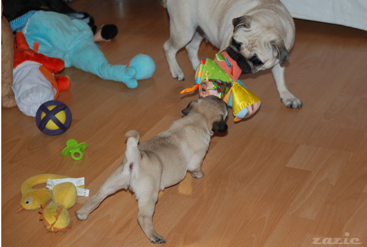 – dzikiej gonitwie wokół kanapy i wywróceniu miski z wodą