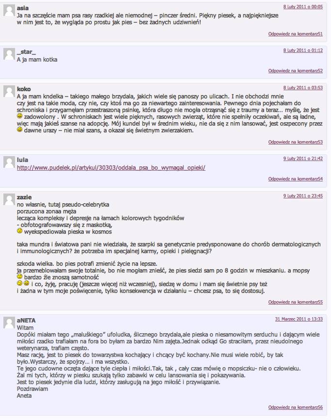 Mam cichą nadzieję, że mopsy nigdy nie staną sie modnymi zabaweczkami dla salonowych dam