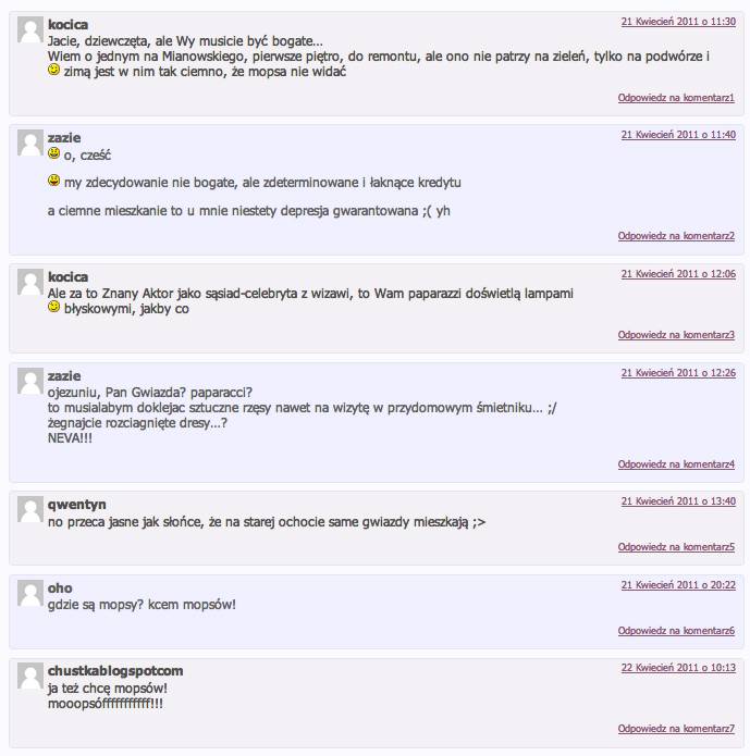 na niższych piętrach lub z windą (mopsy nie lubią schodów);