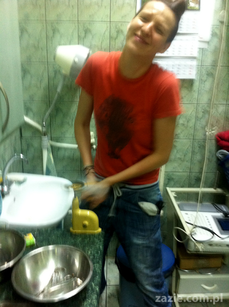tymczasem ja – dupą przytrzymując rozwirowany i podskakujący blat w gabinecie zabiegowym –