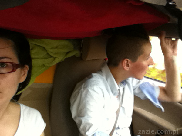 bagażnik zostaje zamknięty cudem, niemal wbijając blat w przednią szybę.