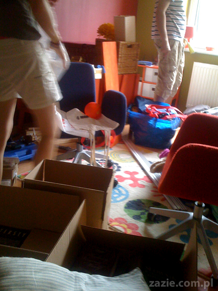 wnosimy blat stołu. wnosimy dziesiątki pudeł i tobołów. talerzy, kubków, sztućców, majtek,