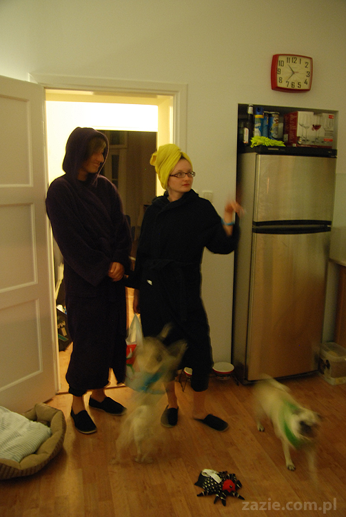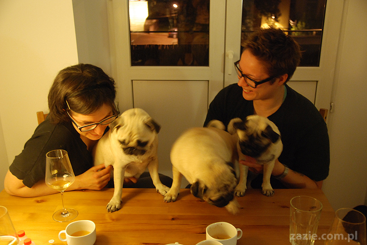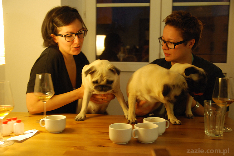 czyli siedziałyśmy z Czmudą i piłyśmy alkohol, a mopsy zagryzały się pod stołem