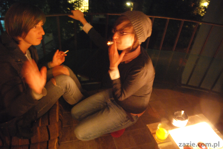jarają szlugi na balkonie, udając, że prowadzą zażarte dysputy o kinie i teatrze