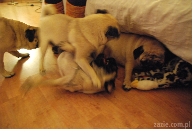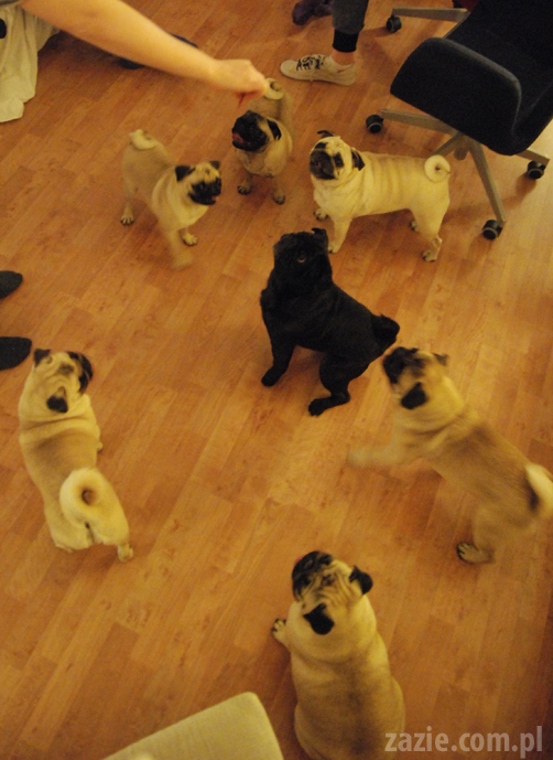 lekkie zniecierpliwienie mopsów z wolna zaczyna przeradzać się w nerwowe napięcie…