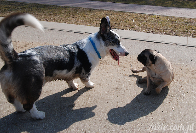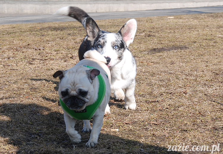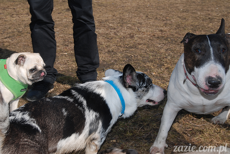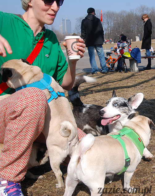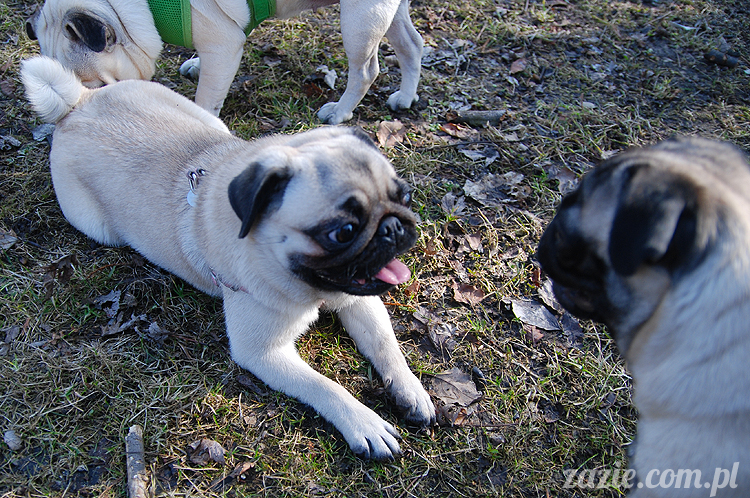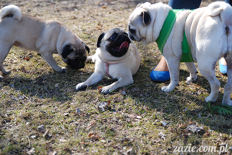 tymczasem mopsy dokonują grupowo rytualnego wejścia i wyjścia z błotnistej kałuży – uznając tym samym wiosnę za rozpoczętą ;)