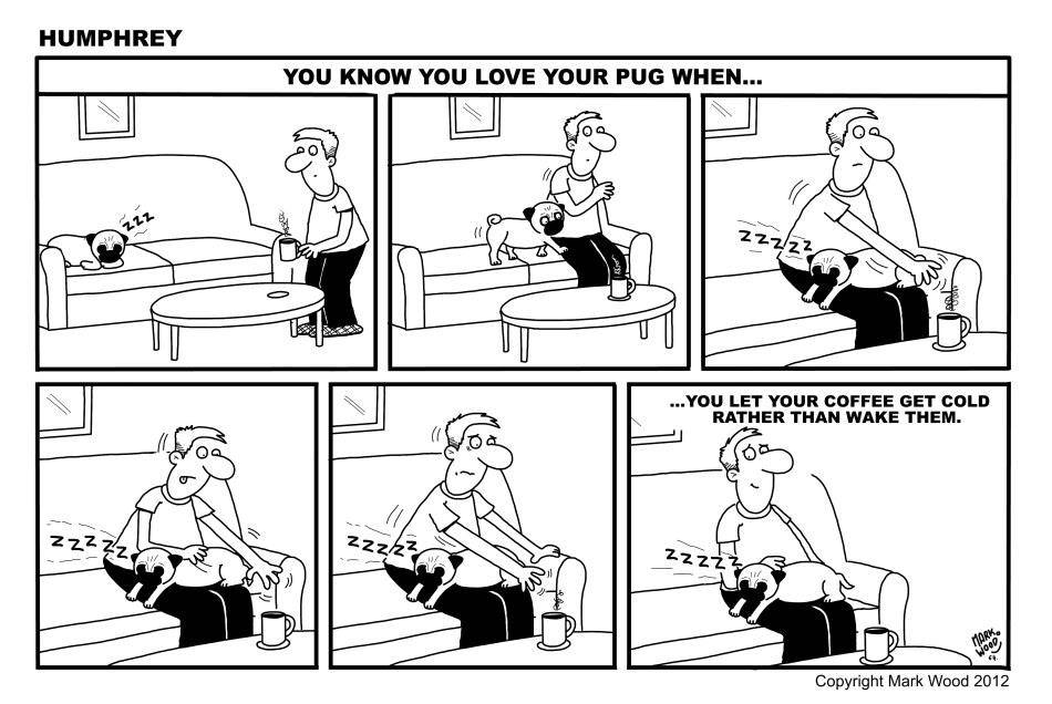 przykład? kiedy zalegniesz na sofie w ramach popołudniowej drzemki, Twoje mopsy zechcą ci towarzyszyć, a jakże.