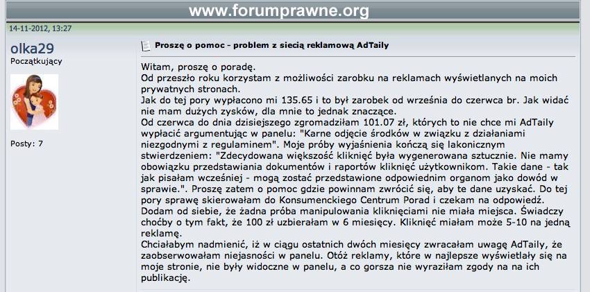 W związku z tym w życie weszły ustalenia tego samego paragrafu regulaminu AdTaily Sp.z.o.o., czyli naliczenie kary umownej,