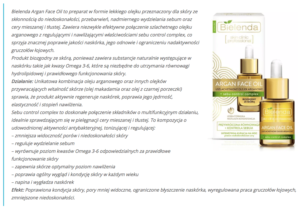 Bielenda, Argan Face Oil: Sebu Control Complex
