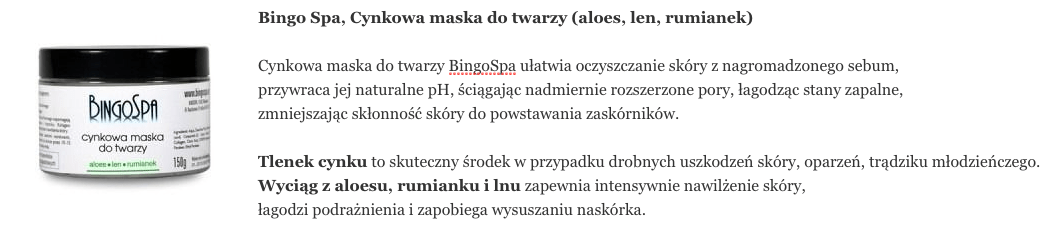 OPINIA ZAZIE o Bingo Spa, Cynkowa maska do twarzy (aloes, len, rumianek)