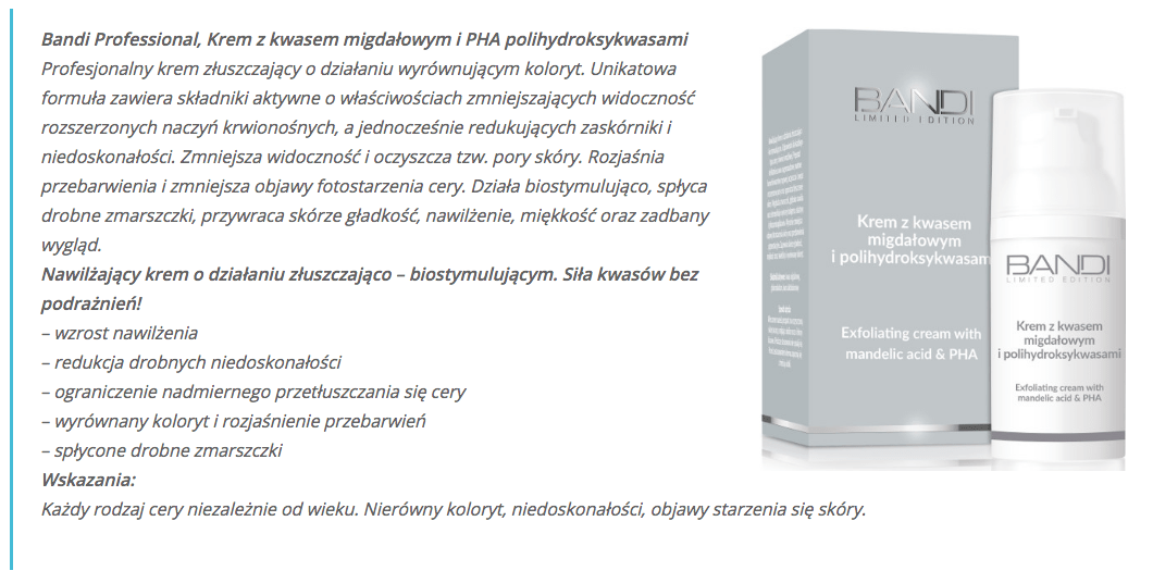 Bandi Professional, Krem z kwasem migdałowym i PHA polihydroksykwasami
