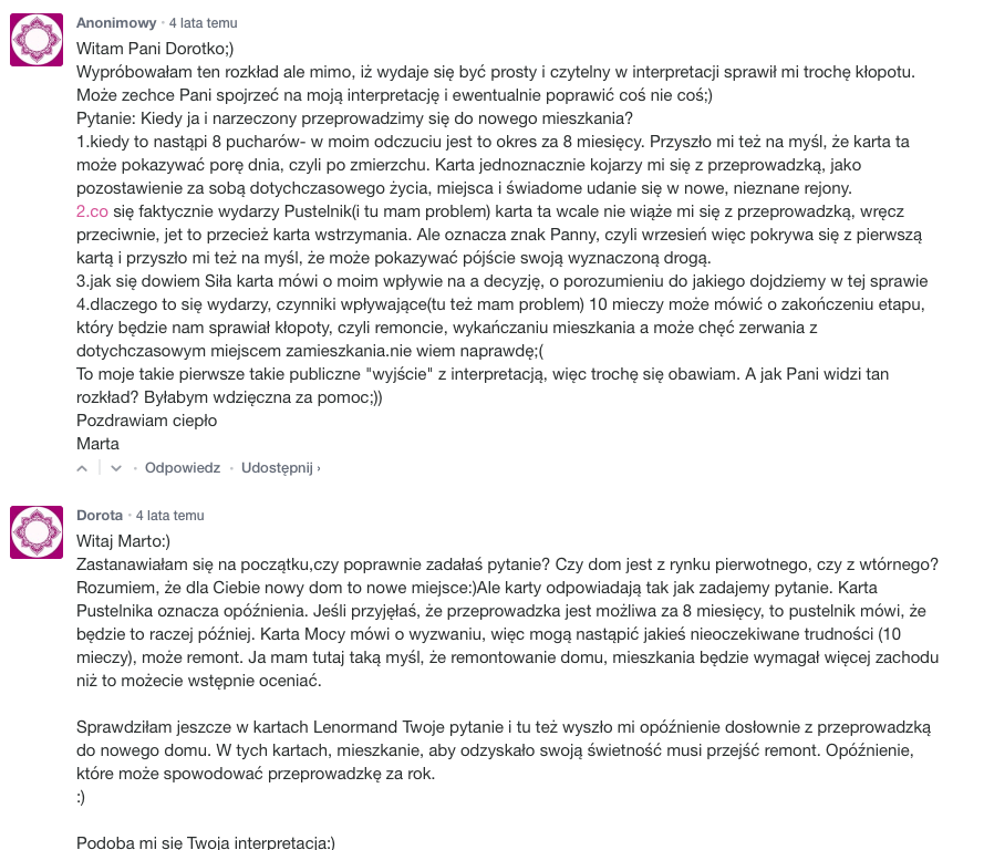 Wstawię tu małą degresję, zachęcam by łączyć Tarota z Numerologią – szczególnie z latami osobistymi, które mogą naświetlić w jakim okresie się znajdujemy i jakie są nasze predyspozycje w danym roku własnym.