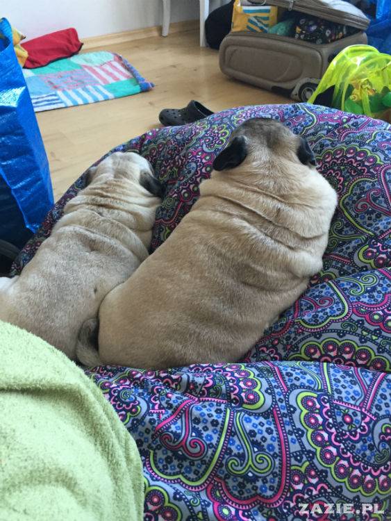 Oczywiście nadal chrapią jak brygada spalonych słońcem robotników na kacu w czasie fajrantu, ale przecież powszechnie wiadomo, że jeśli mops chrapie wniebogłosy, to znaczy, że żyje i ma się dobrze. No bo czego chcieć więcej? :)