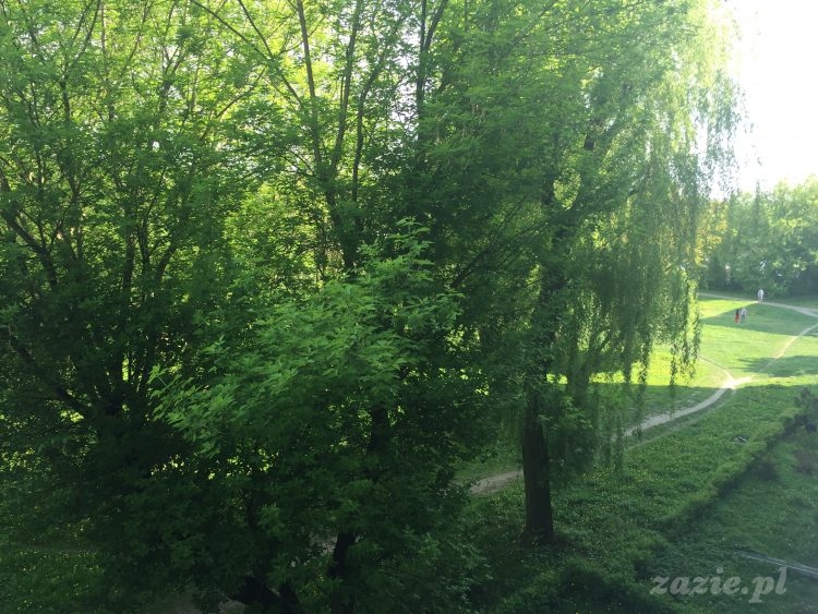 z drugiej strony bloku, po przejściu kilku kroków – rozpościera się Park Potulickich: