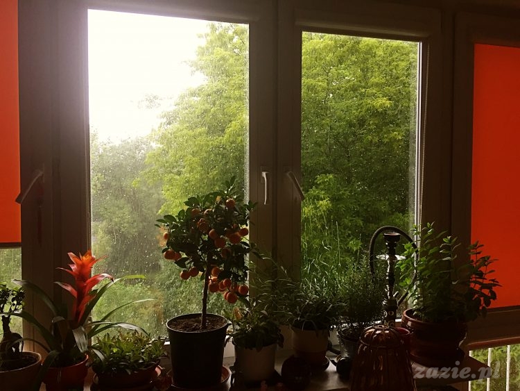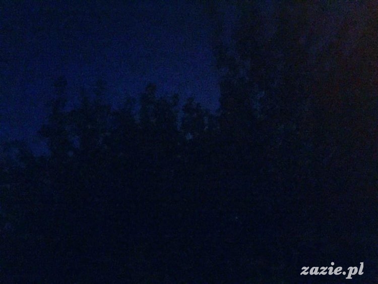 Stojąc wieczorem w otwartym oknie, widzę jedynie atramentowe niebo i gąszcz drzew, a słyszę tylko szum powietrza, świerszcze, żaby, nocne ptaki, szczekanie psa gdzieś w oddali i od czasu do czasu ostatnie przejazdy kolejki WKD.