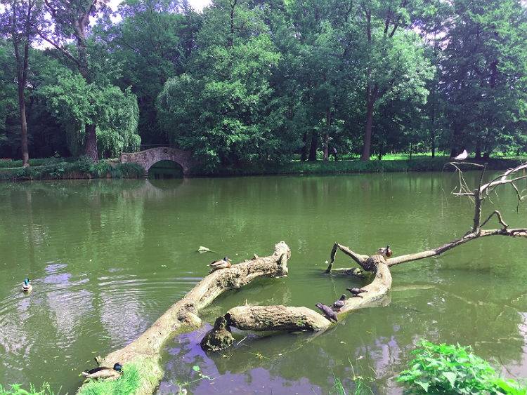 z drugiej strony bloku, po przejściu kilku kroków – rozpościera się Park Potulickich: