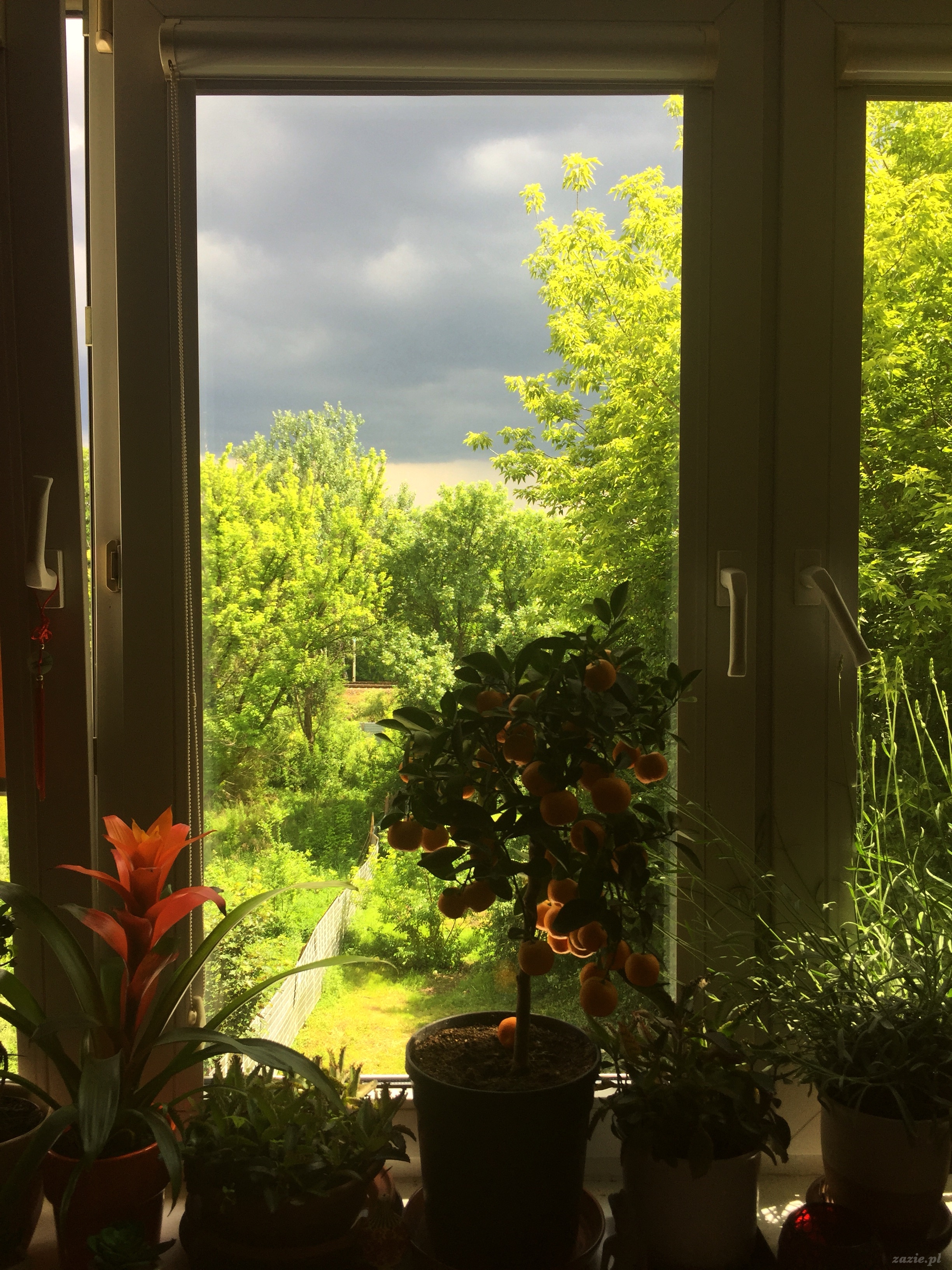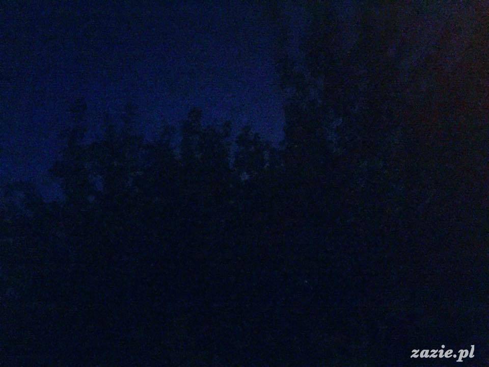 Stojąc wieczorem w otwartym oknie, widzę jedynie atramentowe niebo i gąszcz drzew, a słyszę tylko szum powietrza, świerszcze, żaby, nocne ptaki, szczekanie psa gdzieś w oddali i od czasu do czasu ostatnie przejazdy kolejki WKD.