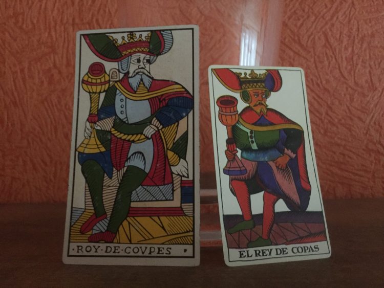 Talie: Jean Dodal (tarot marsylski typu I, Lyon, ok. 1701 r., odrestaurowany przez Jean-Claude’a Flornoy, Letarot.com 2007), Spanish Tarot (czyli reprodukcja wczesnopiemonckiego tarota Giuseppe Ottonego, Serravalle, 1736 r., przekolorowana i z przetłumaczonymi tytułami, Fournier 1975-2014)