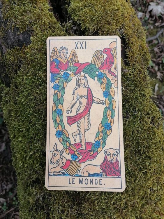 „Jeżeli jedyną rzeczą, której pragnął, było wyjście poza ograniczenie jednostki, poza kategorie i role, po to, aby usłyszeć dudnienie grzmotu w molekułach, mieszanie się substancji pierwszych i ostatnich, oto droga, którą otwiera przed nim Arkan zwany Światem: Venus w koronie tańczy w roślinnym niebie, otoczona kolejnymi wcieleniami wielokształtnego Zeusa; każdy gatunek, każdy osobnik i cała historia rodzaju ludzkiego nie są niczym innym jak przypadkowym pierścieniem w łańcuchu przemian i ewolucji.” (Italo Calvino, „Zamek krzyżujących się losów”, tłum. Anna Wasilewska)
