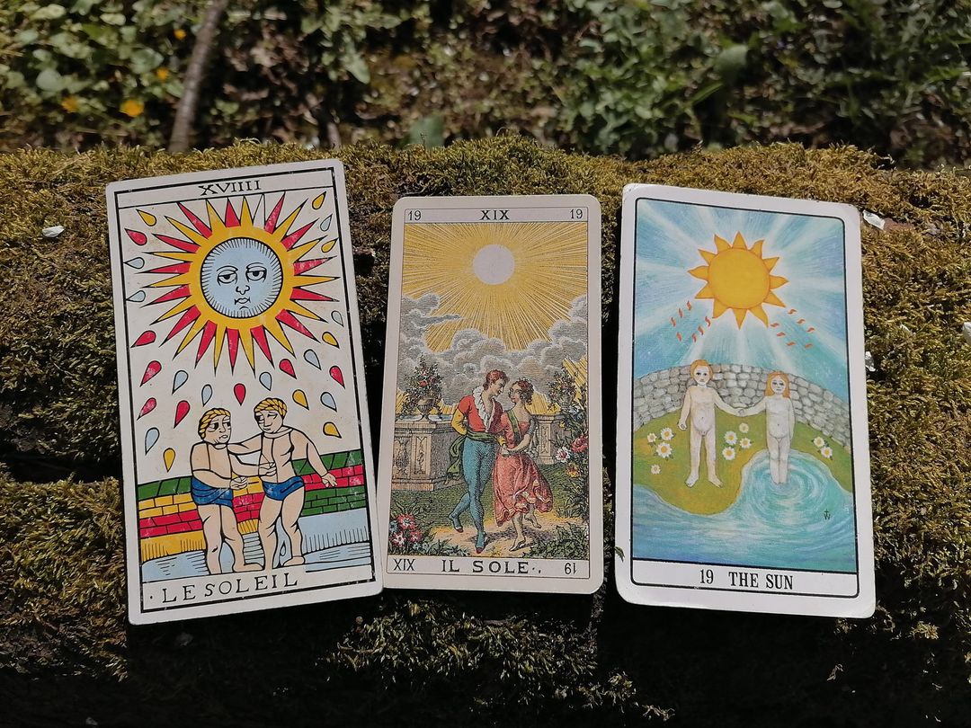 Tarotowa tradycja mówi nam, że w LE SOLEIL dziecko, które widzi, pożycza swoje oczy dziecku niewidomemu. To piękna metafora tego rodzaju komunii, jaki sugerują litery OEI. Może musimy pożyczyć oczy od kogoś innego, żeby być prawdziwie kompletnymi. Być może wtedy uświadomimy sobie, że jedyna tajemnica, którą można odkryć poprzez wynajdywanie ukrytych wskazówek i połączeń w świecie dookoła nas, to tajemnica nas samych.”