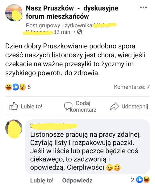 To chyba dobry moment, by opowiedzieć Wam, jak 2 lata temu Moja Teściowa wysłała nam z Wrocławia Pocztą Polską superszybką paczkę typu „migiem, błyskiem i drogo!”, która miała do nas dotrzeć w max 24 godziny. Było lato, a w paczce były własnej roboty jajka faszerowane (naprawdę, boskie!) – fachowo zapakowane, zabezpieczone termicznie, itp. Niestety na nic profesjonalne pakowanie i paczka za milion monet, gdyż pruszkowski oddział Poczty Polskiej pierdolił się z tą przesyłką PONAD TYDZIEŃ!!! W trackingu online widniało, że paczka czeka w naszym oddziale poczty, panie z okienka biły się w pierś, że paczki nie mają i że na pewno jest „w tym innym oddziale” na drugim końcu Pruszkowa. Marcin biegał jak oszalały między jedną placówką pocztową a drugą, gdzie inne panie także biły się w pierś, że jak boga kochają przesyłki na oczy nie widziały. Trwało to z tydzień. Po czym w weekend telefon z nieznanego numeru: zmieszana Pani z Okienka poinformowała nas, że własnoręcznie dostarczy nam tę drogocenną paczkę, która – wychynąwszy jak mniemam z czarnej dziury – cudem się odnalazła i oto jest gotowa do odbioru. Niestety już nie do spożycia.
